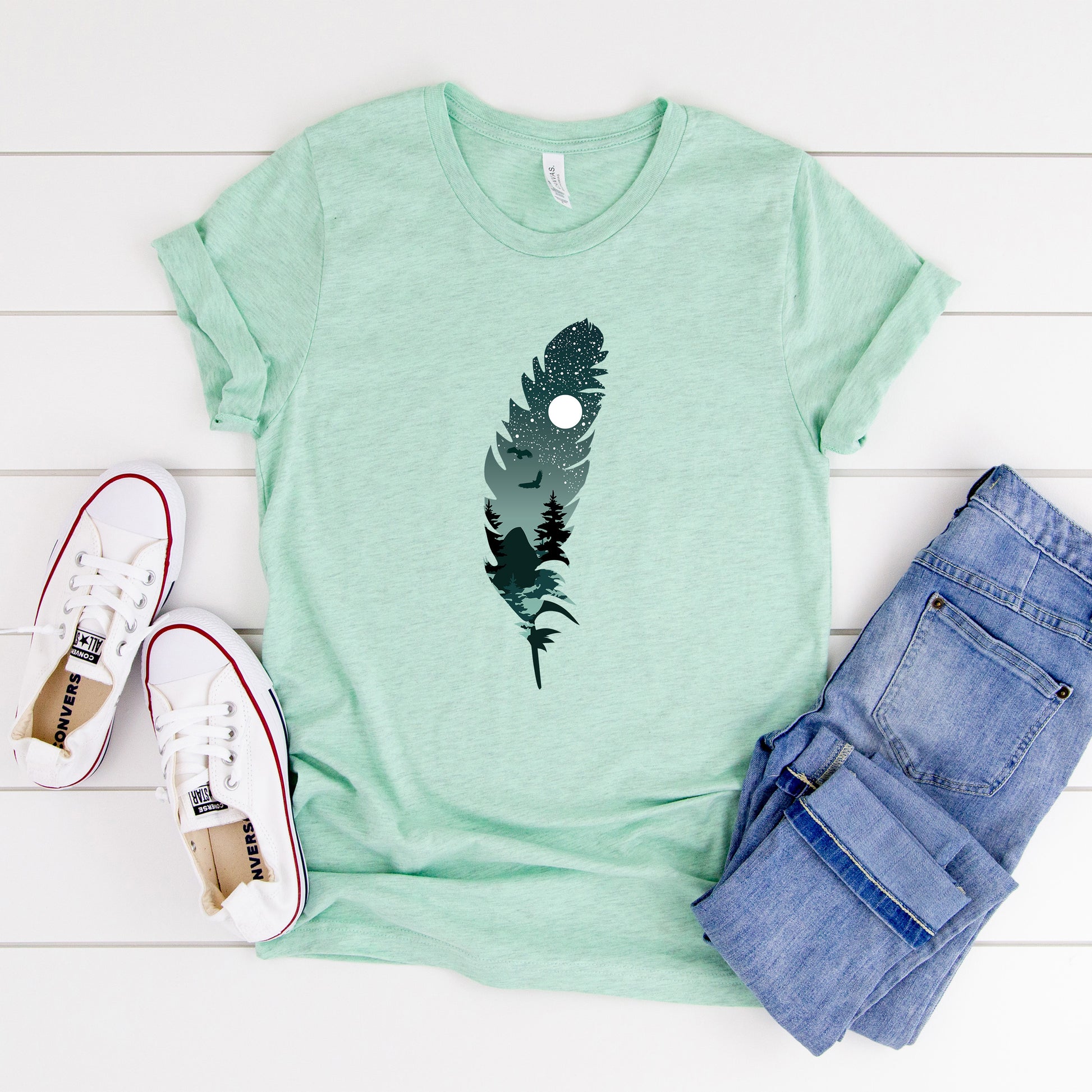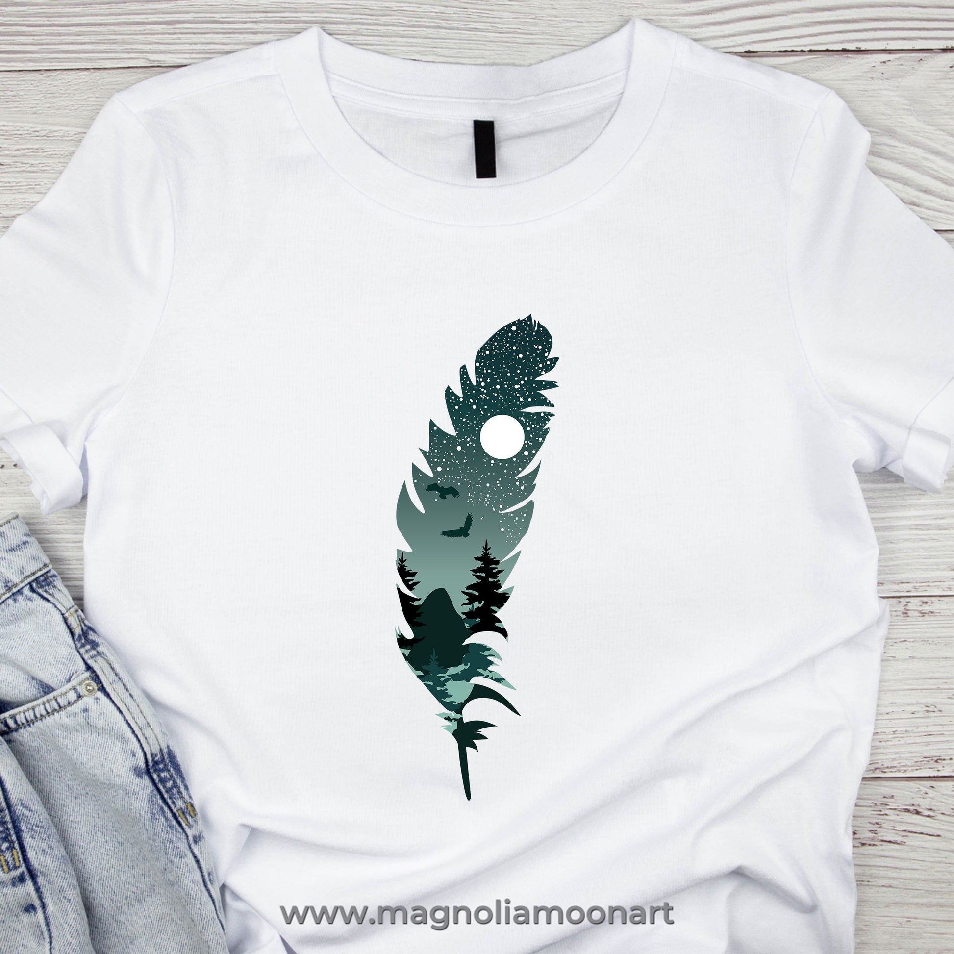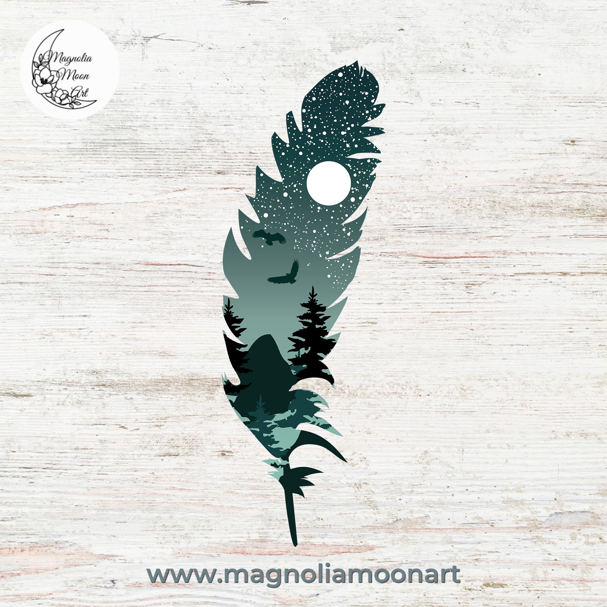 Bird Feather with Starry Night and full moon digital clip art, can be used for scrapbooking, printed paper, cards, gift idea, vector drawing for handmade craft items, printed papers, albums, home decoration, wall decal ideas, graphic design, stickers, decals, hoodies and shirts sublimation.